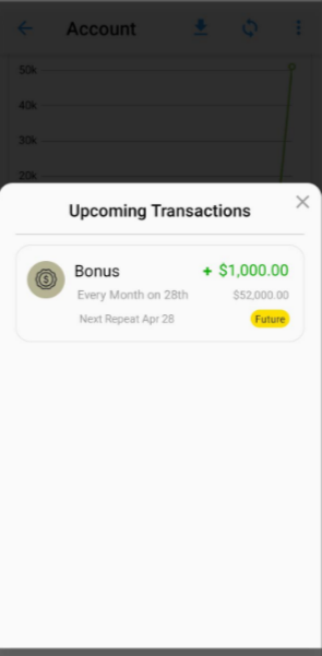 Tracking Recurring transactions helps to plan ahead, avoid missed payments and manage monthly cash flow. TimelyBills app lets you can easily view and manage all your scheduled transactions for a specific account in one place.